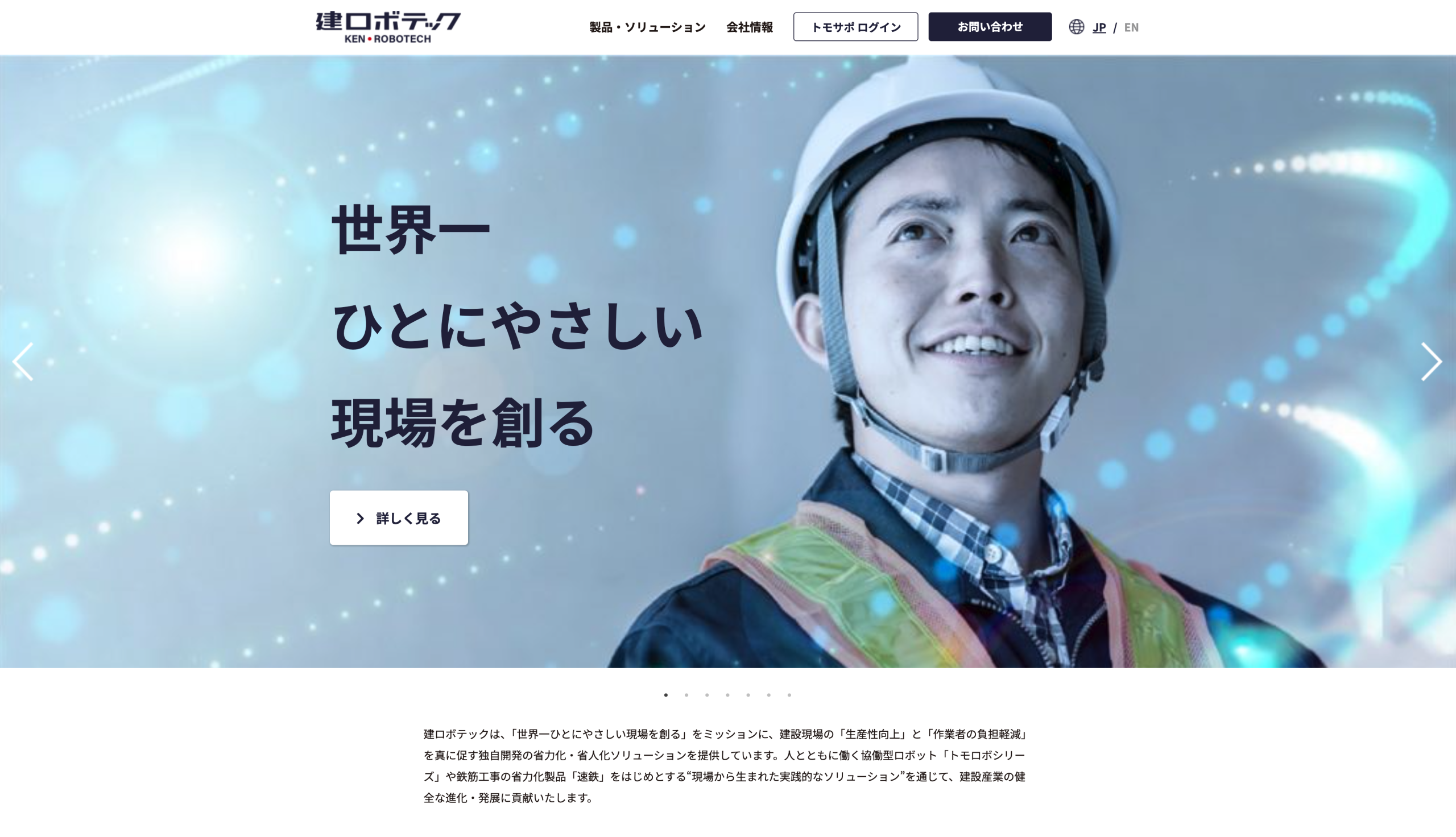 香川県を拠点に、建設現場の省力化・省人化ソリューションを開発・提供する建ロボテック株式会社。「世界一ひとにやさしい現場を創る」をミッションに、協働型ロボット「トモロボシリーズ」や鉄筋工事の省力化製品「速鉄」など、現場から生まれた実践的なソリューションで建設業界の変革に挑んでいます。